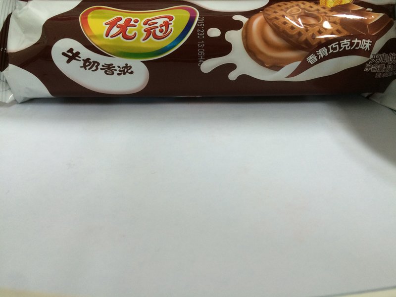 优冠 牛奶香浓香滑巧克力味夹心饼干分类:零食、点心、冷饮。