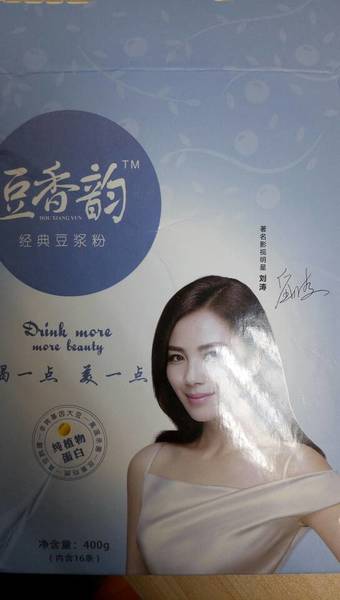 豆香韵 经典豆浆粉每100克营养成分含有410大卡(100毫升),脂肪(克):10.50,纤维素(克):一,碳水化合物(克):60.00,蛋白质(克):18.00