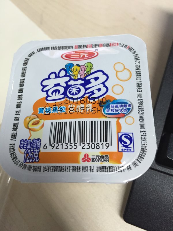 三元 益菌多酸奶(黄桃果粒)分类:奶类及制品。
